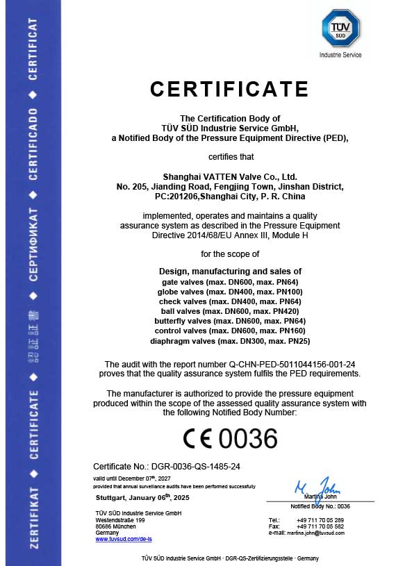 บริษัท Vatten Valve Group เป็นบริษัทชั้นนำระดับโลกด้านวาล์วควบคุมอัตโนมัติทางอุตสาหกรรม ซึ่งมีต้นกำเนิดจากรัฐซาร์ลันด์ ประเทศเยอรมนี เชี่ยวชาญด้านการวิจัย พัฒนา และผลิตผลิตภัณฑ์หลัก เช่น วาล์วบอลควบคุมอัตโนมัติ วาล์วผีเสื้อ และวาล์วปรับแรงดัน ด้วยความเชี่ยวชาญด้านเทคโนโลยีที่โดดเด่น เราจึงสามารถนำเสนอโซลูชันวาล์วที่ล้ำสมัยและการสนับสนุนทางเทคนิคอย่างมืออาชีพแก่อุตสาหกรรมที่สำคัญต่างๆ เช่น พลังงาน เคมี การบำบัดน้ำ ยา และการแปรรูปอาหาร